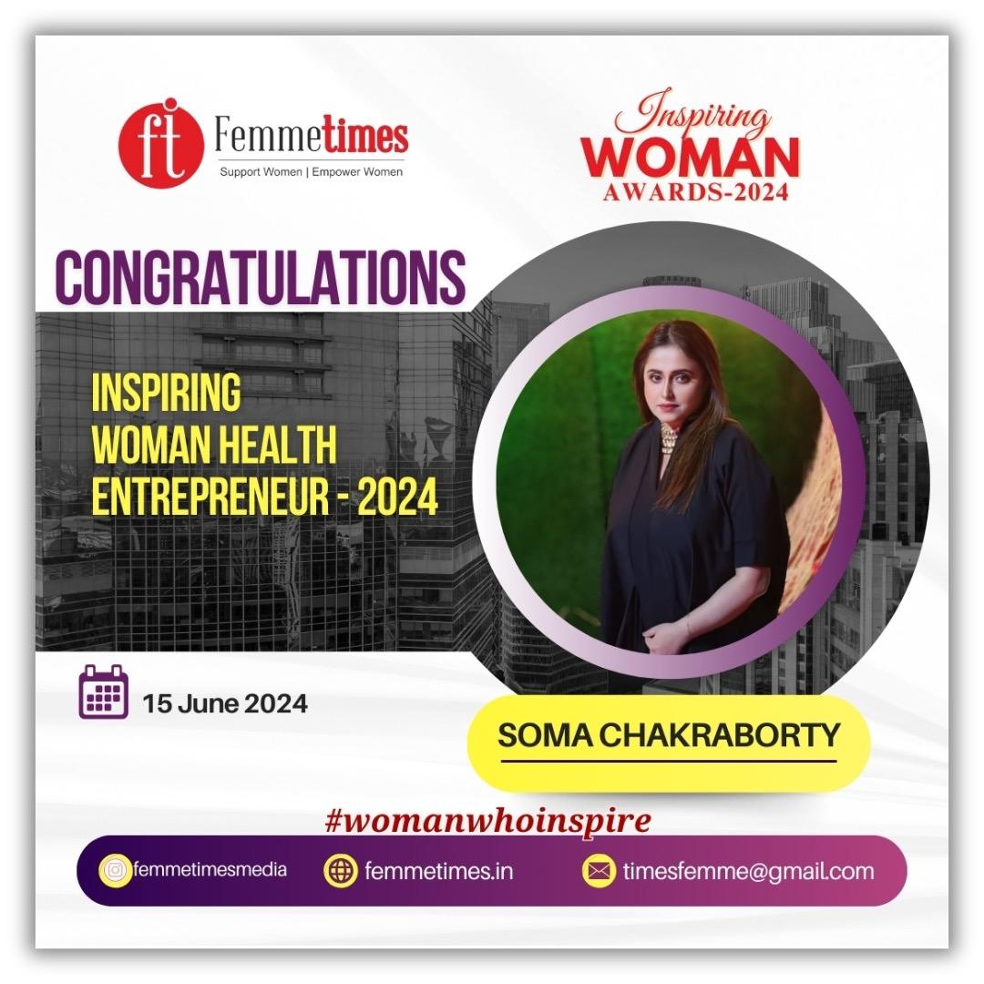 Awarded by Femmetimes as an Inspiring Woman Health Entrepreneur 2024.